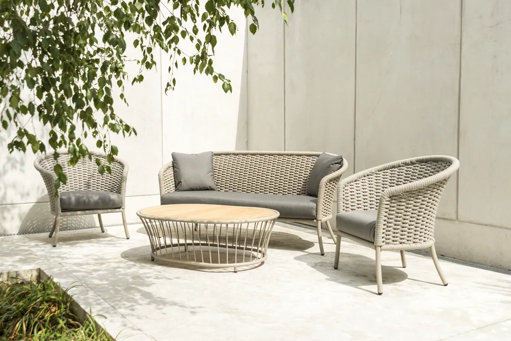Neuheit des Jahres bei Alexander Rose ist die hinreißende Cordial Kollektion, die aus sechs Möbelstücken besteht. Sie fühlt sich sowohl auf der Gartenterrasse, dem Wintergarten oder im Innenbereich gleichermaßen zu Hause. Die Cordial ist aus Rundrohr entweder aus Aluminium oder elektropoliertem Edelstahl gefertigt. Der Beistell- und der Loungetisch ist wahlweise mit Roble oder grau getönter Glas-Tischplatte erhältlich. Die Kissen sind in den Farben Anthrazit, Oatmeal und Charcoal erhältlich. Die Kissen können mit warmem Seifenwasser und einem Mikrofasertuch gereinigt werden. Für hartnäckige Flecken auf den Kissen empfehlen wir ein mildes Reinigungsmittel für Textilien. Die Kissen sind wasserdicht und können im Freien gelassen werden. Um den Reinigungsaufwand zu verringern, empfehlen wir bei längerer Nichtnutzung die Beach Lounge abzudecken oder die Kissen an einem trocken Ort zu verstauen.