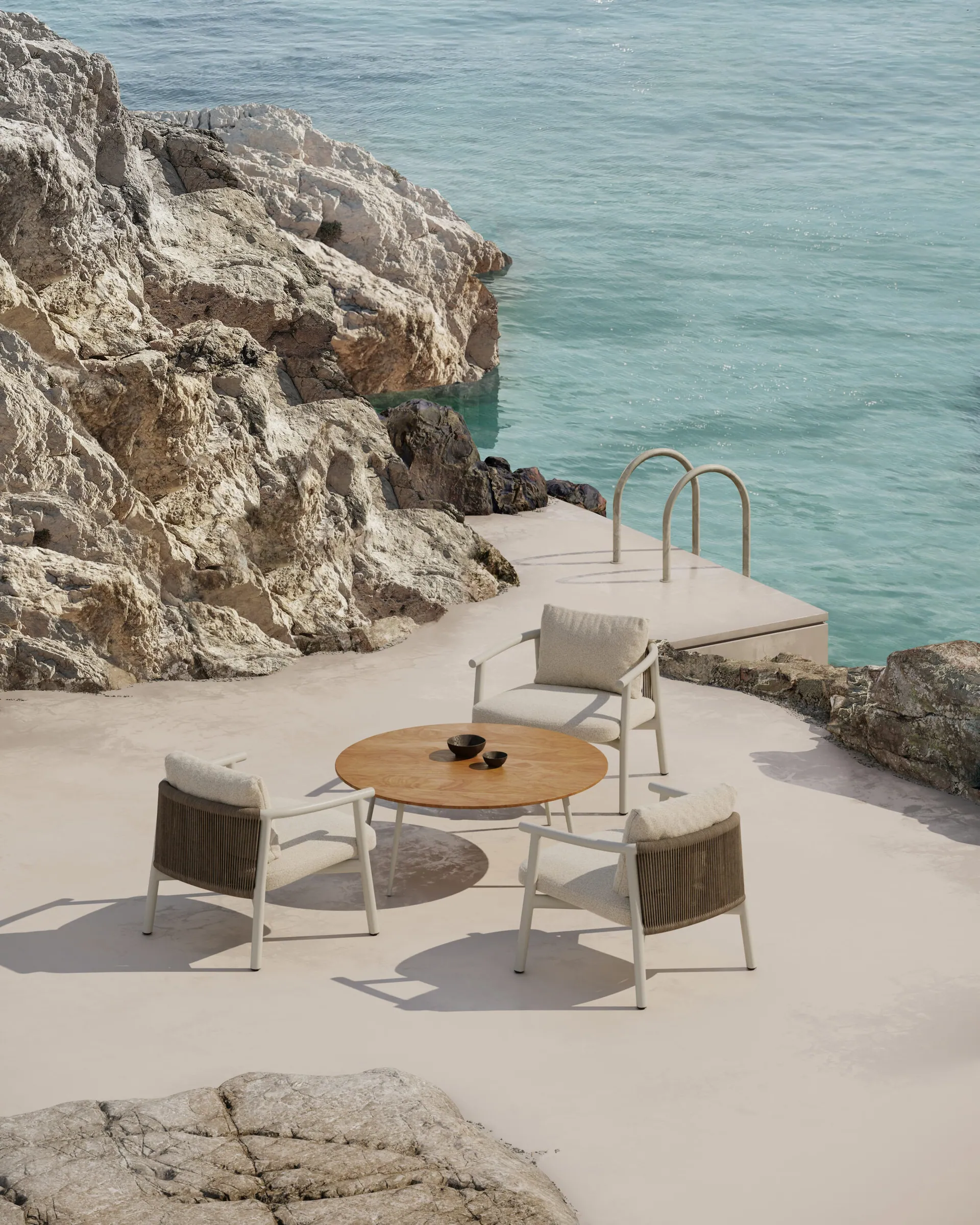 Die Welle, die bleibt. Die Nami-Kollektion – benannt nach dem japanischen Wort für Welle – fängt die fließende Bewegung des Wassers in eleganten Outdoor-Möbeln ein. Sanft geschwungene Linien und einladende Formen schaffen Ruheoasen für Terrasse und Garten. Spanische Handwerkskunst mit fernöstlicher Inspiration.