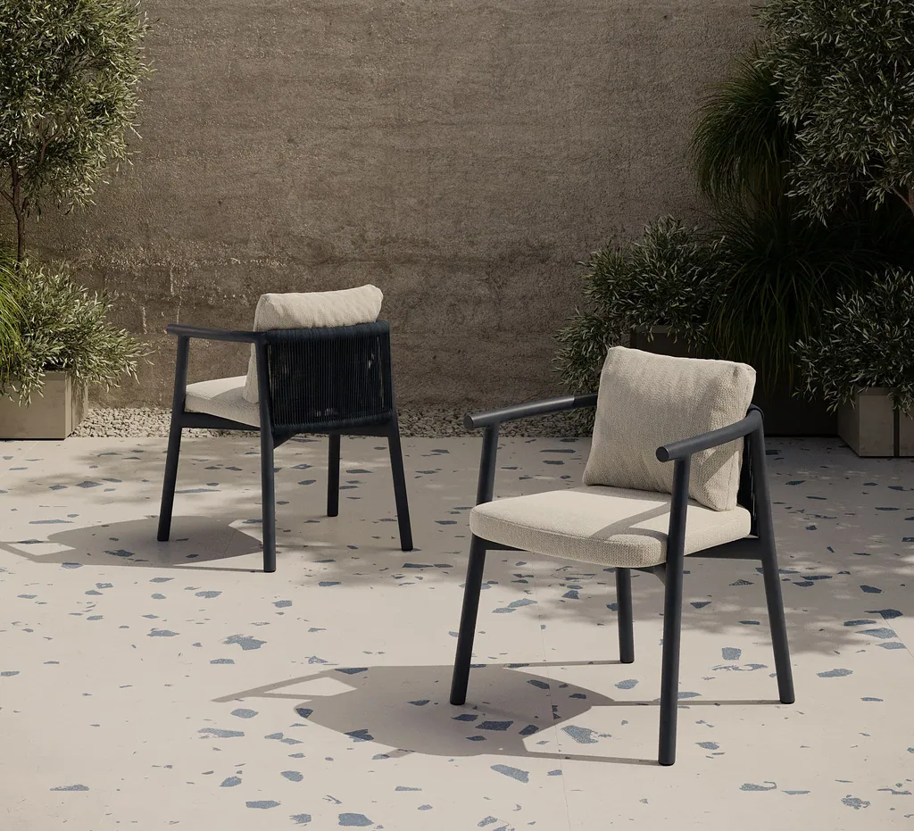 Bivaq hat vor kurzem nicht nur ein umfassendes Rebranding durchgeführt, sondern auch drei beeindruckende neue Kollektionen auf den Markt gebracht: Sal, Nami und Balm. Die Kollektion Balm wurde entwickelt, um ein einhüllendes und komfortables Erlebnis zu bieten. Mit einem Gestell aus runden Aluminiumrohren und einer Rückenlehne aus geflochtenem Segeltuch umhüllt er ein weiches Kissen, das zu langen, gemütlichen Gesprächen nach dem Essen einlädt. Die Armlehnen sind so gestaltet, dass sie durch ihre Textur, Dicke und makellose Verarbeitung ein angenehmes Tastgefühl vermitteln. Balm eignet sich besonders gut für den Außenbereich, kann aber dank seines vielseitigen Designs auch im Innenbereich eingesetzt werden. Das Besondere an dieser Kollektion ist die Rückenlehne aus Segeltuch, die dem Produkt einen handwerklichen Touch verleiht und das Outdoor-Erlebnis auf elegante und stilvolle Weise definiert. Die Kollektion umfasst Ess- und Loungesessel, die mit oder ohne geflochtenes Seil erhältlich sind, und bietet eine große Auswahl an Seilen, Stoffen und Farben, um sich in jede Umgebung einzufügen. Alle verwendeten Materialien sind sehr sonnen- und wasserbeständig, was diese Kollektion zur perfekten Wahl für jedes Klima und jeden Außenbereich macht...