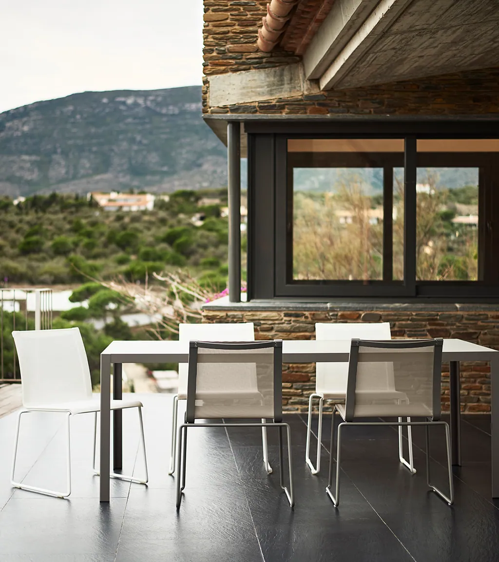 Die Nami-Kollektion, Bivaqs erste Kollektion von Holzmöbeln für den Außenbereich, ist inspiriert von dem japanischen Wort nami", das Welle" bedeutet. Jedes Element der Kollektion ist so gestaltet, dass es die Emotionen und das Fließen des Meeres einfängt. Die Möbel bestehen aus sorgfältig ausgewählten Iroko-Leisten und einer leichten, lackierten Aluminiumstruktur, die ein Gefühl von Leichtigkeit und Ruhe vermittelt. Das Holz ist zertifiziert nachhaltig und wurde lokal beschafft, um den CO2-Fußabdruck zu minimieren. Die von Francesc Rifé Studio entworfene Kollektion umfasst Sofas für ein bis drei Personen und Tische in zwei Höhen, die sich in verschiedenen Materialien und Farben kombinieren lassen. Die Kissen mit ihren entspannten Linien bilden einen Kontrast zu den flachen Holzoberflächen und bieten ein Gleichgewicht zwischen Einfachheit und Komplexität mit zahlreichen funktionalen Details wie Armlehnen, abgerundeten Kanten und leicht geneigten Rückenlehnen. Die Kollektion Sal bietet eine Auswahl an leichten, modernen und vor allem bequemen Stühlen und Sesseln. Die Möbel haben ein Stahlgestell mit minimaler Stärke, das ein Gefühl von Leichtigkeit vermittelt und gleichzeitig eine lange Lebensdauer garantiert. Der verwendete Stoff, der an Naturfasern wie Sisal erinnert, verleiht der Kollektion eine natürliche, warme und handwerkliche Ausstrahlung. Die Stühle und Sessel vereinen die für den Außenbereich erforderliche Robustheit und Langlebigkeit mit einer einladenden Ästhetik. Sie eignen sich sowohl für moderne als auch für rustikale oder küstennahe Umgebungen und zeichnen sich durch ihre zeitlose Anziehungskraft und außergewöhnliche Qualität aus. Der verwendete Stoff ist sehr widerstandsfähig gegen Frisch- und Salzwasser und besonders praktisch für den Einsatz im Freien, da keine zusätzlichen Polsterungen erforderlich sind. Außerdem sind die Stühle und Sessel stapelbar und können in verschiedenen Farben lackiert werden, so dass sie sich jeder Umgebung anpassen. Mit diesen drei neuen Kollektionen und dem frischen Rebranding setzt Bivaq neue Maßstäbe in der Outdoor-Möbelbranche und bietet innovative Designs, die sowohl funktional als auch ästhetisch ansprechend sind.