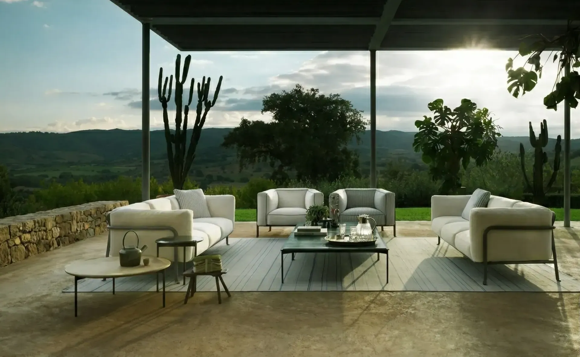 Borea ist eine moderne und vielseitige Gartenmöbel Kollektion, die von Piero Lissoni entworfen wurden. Die Möbelstücke haben ein röhrenförmiges Metallgestell mit einem fließenden und nahtlosen Design, ohne Fugen und Unterbrechungen. Um eine Kollektion mit einem unverwechselbaren Stil zu erfinden sind bei der Fertigung der Borea neue Technologien genutzt, die typischerweise in der Luftfahrt eingesetzt werden. Die Loungekollektion umfasst Zwei- und Dreisitzer-Sofas, einen großen Sessel, einen niedrigen kleinen Sessel und einen Esszimmerstuhl, alle mit stapelbaren lackierten Aluminiumgestell. Für Komfort sorgen großzügige Kissen, die nicht nur weich und entspannend sind, sondern auch nachhaltig entwickelt wurden. Die Polster bestehen aus Polyesterfasern, die aus recycelten PET-Kunststoffflaschen mit einem Polyurethankern unterschiedlicher Dichte stammen. 510 Stück 1500-ml-Flaschen werden benötigt, um die Polsterung für ein Borea-Dreisitzer-Sofa zu erstellen, 390 Flaschen für das Zweisitzer-Sofa, 280 für den Sessel.