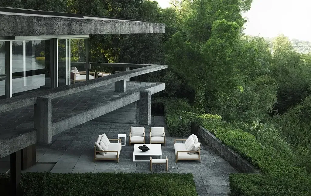 Die Kontinuität der Form und die Qualität des Holzes machen Pablo Outdoor besonders angenehm. Komfort und Weichheit finden sich im Sofa und in den Sesseln wieder: Die tiefe Sitzfläche und die Rückenlehne werden durch großzügig gepolsterte Kissen ergänzt, die sich frei anordnen lassen und so einen großzügigen Bereich schaffen, in dem man sich zurückziehen oder gesellige Momente verbringen kann.