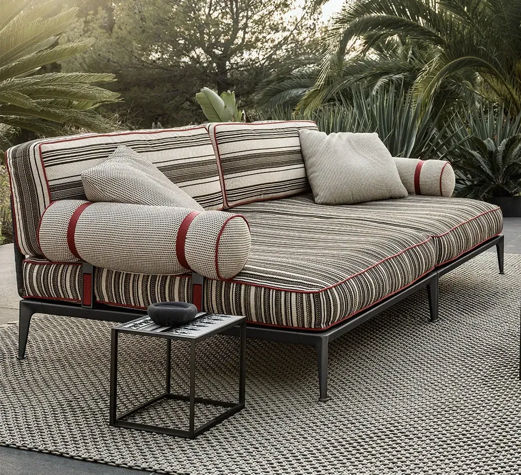 Ribes ist eine neue Kollektion aus kombinierbaren Sitzmöbeln, die von Antonio Citterio entworfen wurde und vor allem durch Flexibilität, Personalisierbarkeit, Farbe und sorgfältig ausgewählte Materialien besticht. Die Sofas, Mittel- und Endelemente, Chaise Longue und Hockers verschiedener Arten und Größen können auf unterschiedlichste Weise kombiniert werden und bieten dank der breiten Auswahl an Bezügen und Ausführungen die Möglichkeit, den eigenen Außenbereich auf ganz persönliche Weise zu gestalten.