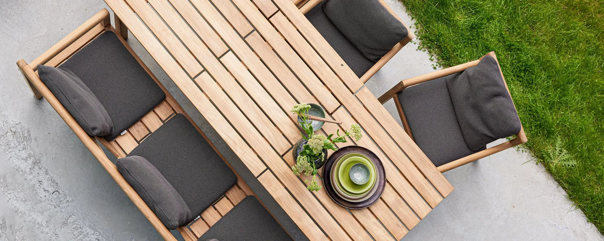 Die elegante Teakholz-Kollektion GRACE wurde von dem dänischen Deisgnerpaar Foersom und Hiort-Lorenzen MDD entworfen.Das Design von Grace ist Ausdruck einer diskreten Balance zwischen klaren nordischen Linien und moderner Schlichtheit.