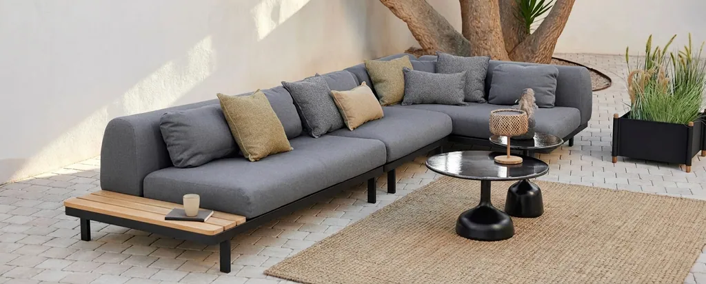 Space ist ein völlig neues Lounge-Konzept in einem modernen, skandinavischen Design. Dieses Konzept eröffnet eine ganz neue Dimension von modularen Lounge-Sofas, bei denen man das Material und die Funktion und damit den Look verändern kann. Space ist ein Lounge Sofa, welches man zu einer Sonnenliege verwandelt kann, indem man die Rücken- und Seitenkissen zu Tischen umwandelt. Die Tischplatten sind entweder aus Teakholz oder Solid Surface Material, der Stoff der Kissen ist der weiche und komfortable Cane-line AirTouch Stoff. Das innovative und moderne Lounge-Konzept wurde vom dänischen Designerpaar Foersom & Hiort-Lorenzen MDD entworfen.
