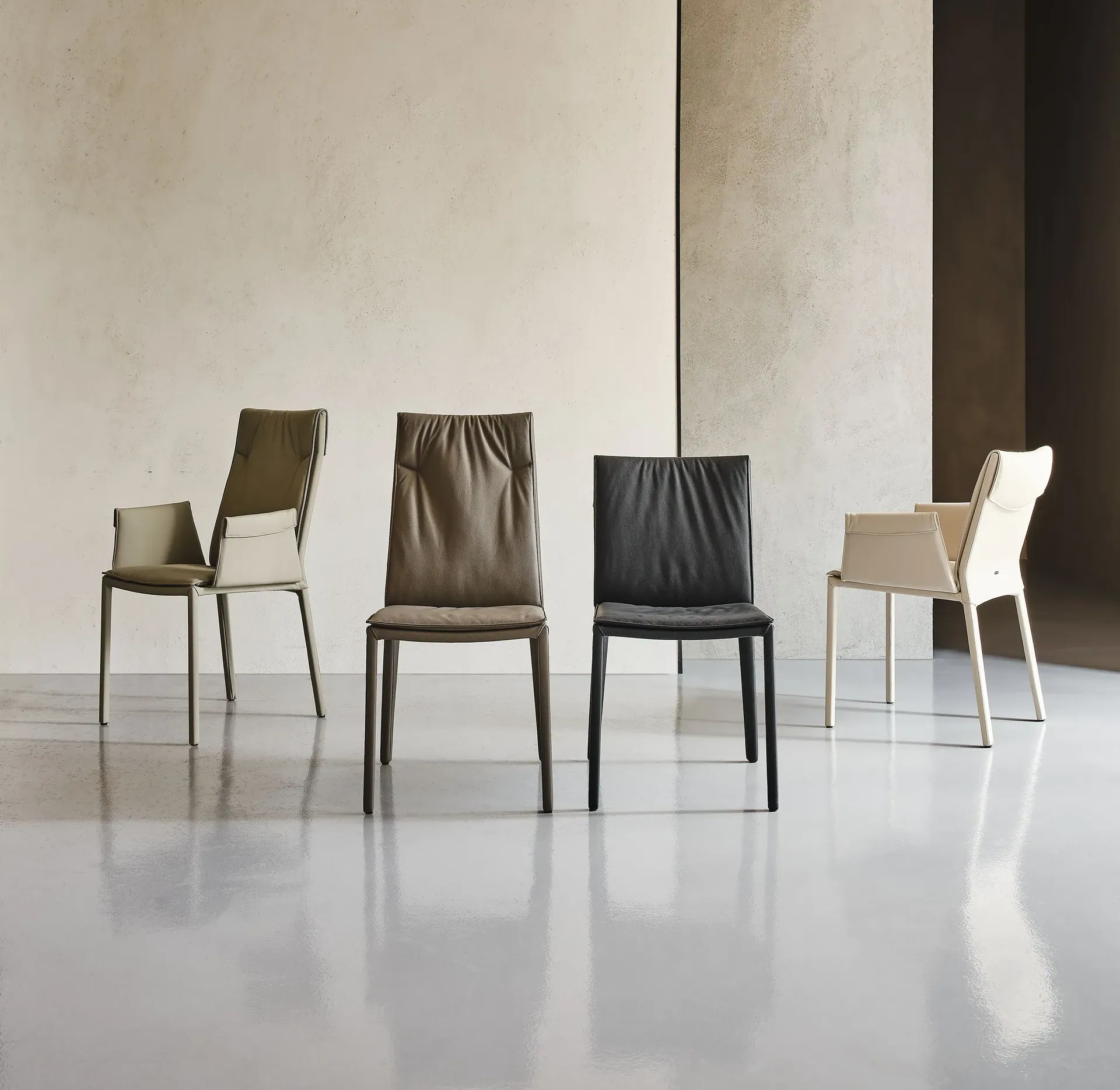 Der ISABEL Barhocker von Cattelan Italia, entworfen von Paolo Cattelan im Jahr 2017, beeindruckt durch eine makellose Verarbeitung. Das vollständig bezogene Stahlgestell strahlt Raffinesse aus und bietet eine stabile Basis, während die Sitzfläche mit präzisen Nähten und edlen Materialien gestaltet ist. Zur Auswahl stehen Bezüge aus Kunstleder, Stoff, Micro Nubuck oder Softleder/Glove, die dem Barhocker eine individuelle Note verleihen.