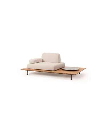 Ethimo Ace wird aus natürlichem Teakholz und Aluminium hergestellt, wobei letzteres in vier Farbvarianten erhältlich ist: Schwarzrot, Moosgrün, Kaffeebraun und Warmweiß. Die Verwendung umweltfreundlicher Materialien, die auch im Freien verwendet werden können, macht Ace zu einer wetterfesten, sportlichen Kollektion, die sich an die Umgebung anpasst, in der sie aufgestellt wird.