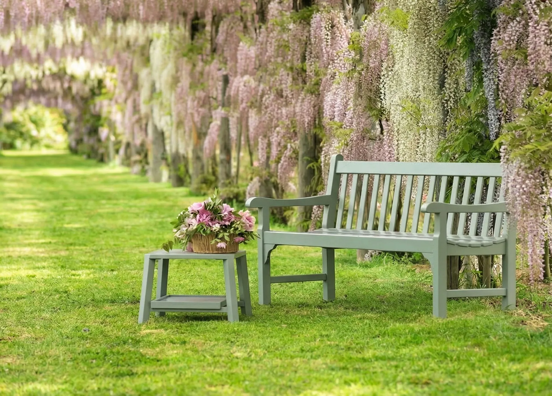 Ein stets aktueller Klassiker: die Gartenbank Notting Hill, in zahlreichen, der Natur nachempfundenen Farben. Garden bench in natural teak, with pickled finish or in painted mahogany.