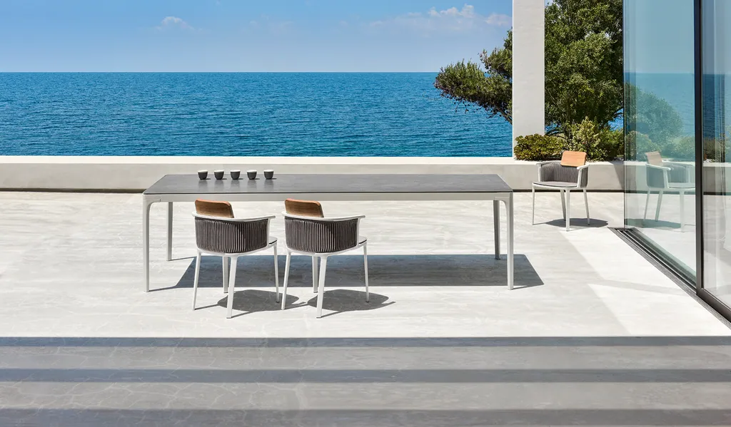Play ist eine Outdoor Kollektion von quadratischen und rechteckigen Tischen mit essentiellem Design, zeitgenössischem Charakter und harmonischer Geometrie. Diese hochwertige Gartentische bieten die Möglichkeit die Größen und Varianten der Materialien auszuwählen, aus denen die Tischplatte besteht: lackiertes Aluminium, Naturstein, Porzellanfliesen mit Steinoptik oder einer speziellen Strukturierung. Sie sind für das vielseitige Mischen und Kombinieren mit anderen Produkten der Ethimo-Kollektion konzipiert und eignen sich hervorragend für jeden Einsatz im Wohn- oder Objektbereich.