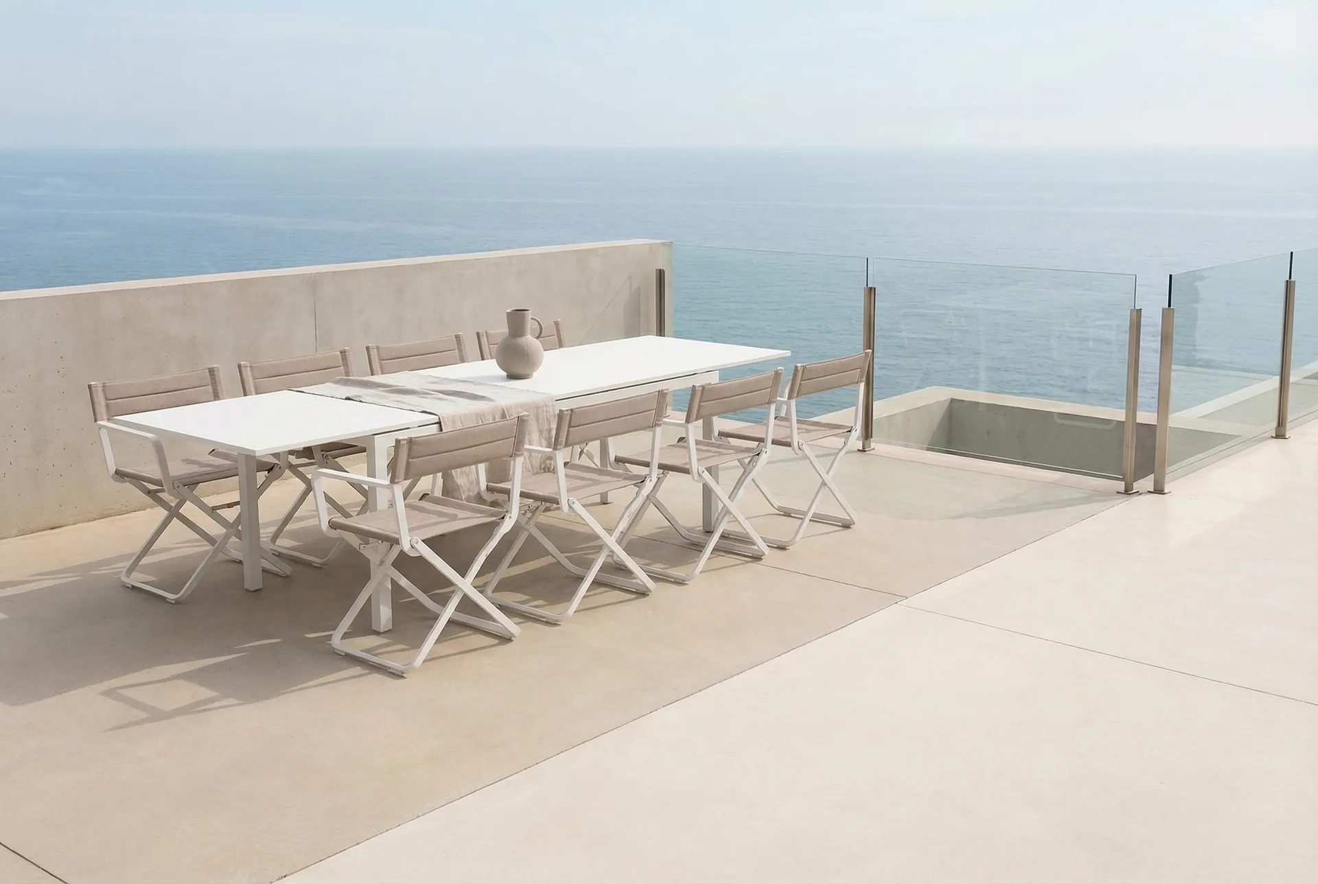 Modern and functional "director's chair" with a fold-up frame, entirely powder-painted aluminium.