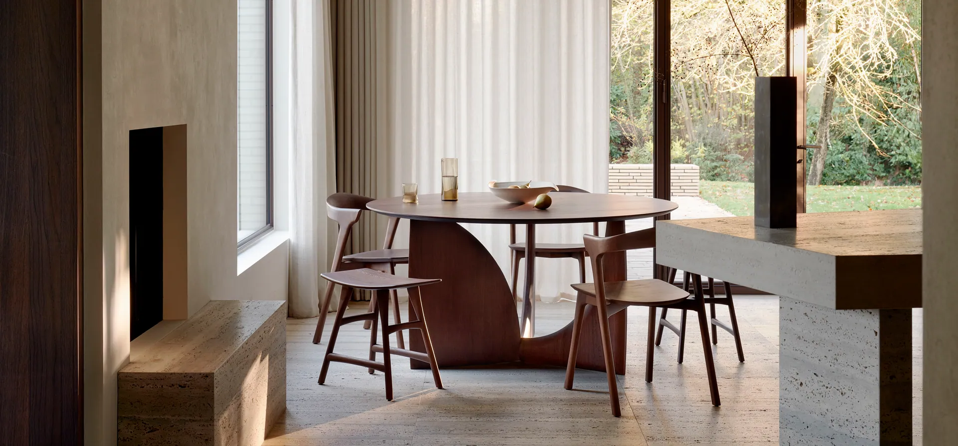 Lounge-Stühle und Essstühle: Komfort und Ästhetik verschmelzen in den Stühlen von Ethnicraft für Essbereich und Lounge.