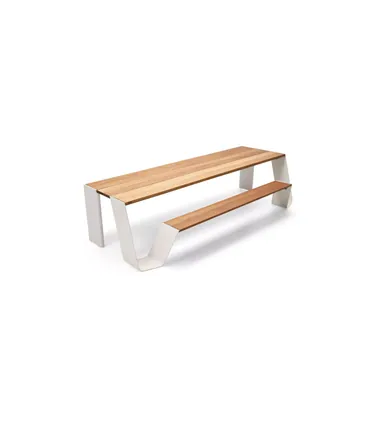 Die Picnik Kollektion von Extremis vereint Funktionalität und Kunst in einem ikonischen Design. Hergestellt aus einem einzigen Stück Aluminiumblech, erhält der Tisch durch strategische Schnitte und Biegungen seine charakteristische Form, die ihm sowohl Robustheit als auch Eleganz verleiht. Die abgerundeten Flächen sorgen für strukturelle Stabilität und ermöglichen das einfache Abfließen von Regenwasser – ideal für den Einsatz auf Terrassen, in Parks oder auch in Innenräumen.