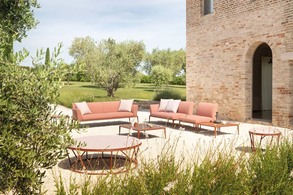 Fast New Joint ist die neue Lösung, um Außenräume mit maximaler Flexibilität anzupassen. Sofas und Tische werden kombiniert, um sich an die Umgebung anzupassen und sie gleichzeitig neu zu erfinden. Sie bilden Inseln - Kompositionen aus einer oder mehreren Farben, bei denen Sitze, Tische und Hocker nach Belieben gewechselt werden können. Die abnehmbaren Kissen sorgen für zusätzlichen Komfort, ohne Abstriche bei der Funktionalität zu machen. Dies ist ein wichtiges Merkmal für Möbel im Freien. Die Kissen sind auch wasserdicht, um eine noch größere Widerstandsfähigkeit gegen Witterungseinflüsse und Feuchtigkeit zu gewährleisten.