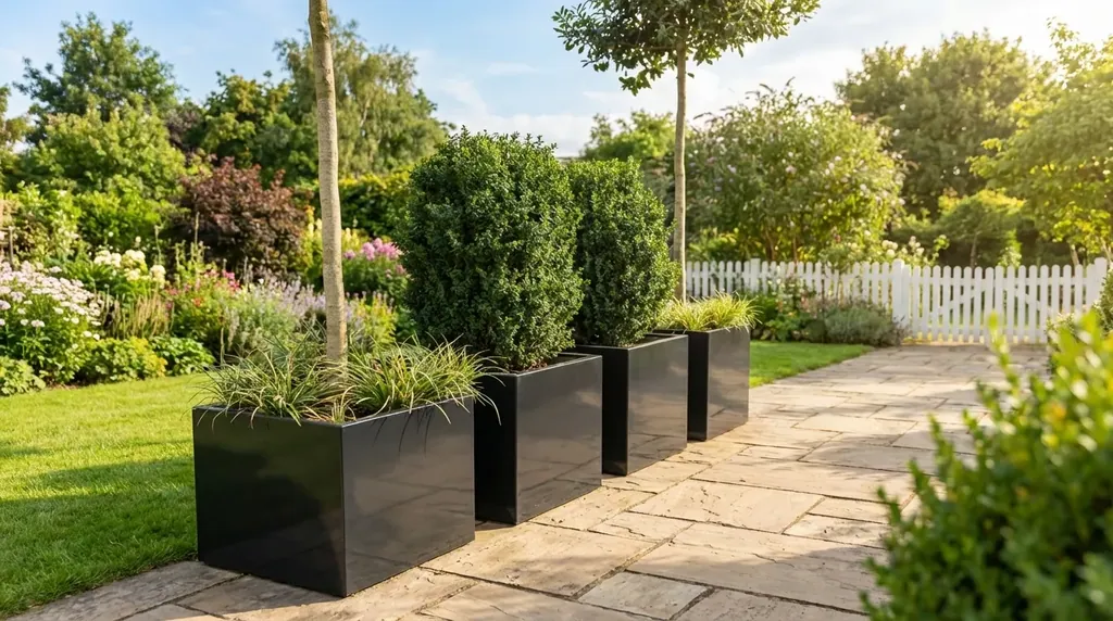 Gartensilber Pflanzgefäße.