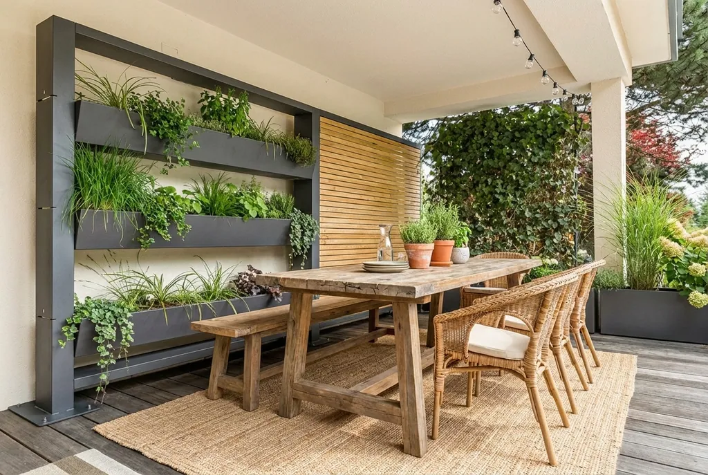 Die gartensilber-Sichtschutzelemente dienen zur individuellen Gestaltung von Nischen und kleinen Räumen auf großen Flächen wie etwa Restaurant- oder Hotelterrassen. Das zu einer fertigen Efeuhecke passende Pflanzgefäß mit Pfosten und Halterungen kann mit Rollen versehen werden. Der Sichtschutz aus Thermo-Aspenholz bekommt mit der Zeit eine edle graue Patina, bleibt aber in sich stabil.