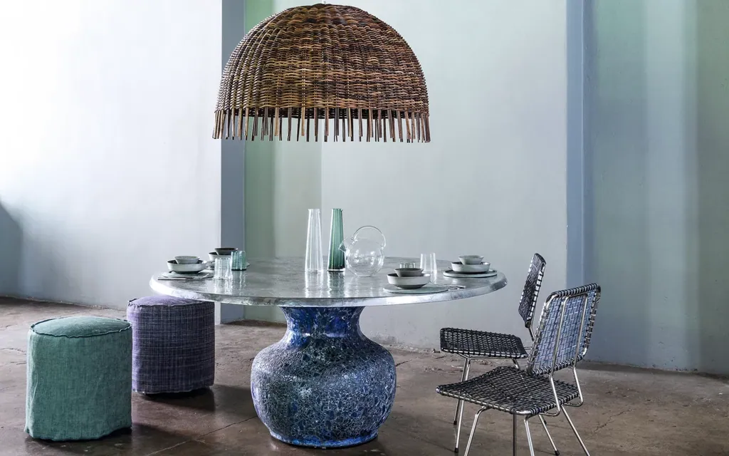 Gervasonis Kollektion Croco manifestiert den Eklektizismus der Marke in einer faszinierenden Weise. Inspiriert von exotischen Einflüssen präsentiert diese bemerkenswerte Serie von Hängeleuchten ein markantes Flechtwerk, das in der indigenen Sprache der indonesischen Provinz Kalimantan als "Krokodil" übersetzt wird, aufgrund seiner charakteristischen dunklen Farbe. Jedes Stück in der Kollektion Croco verkörpert die subtile Schönheit des Flechtmaterials und erschafft ein sanftes Licht, das ein Gefühl von wohliger Wärme und Behaglichkeit vermittelt. Die Kollektion Croco zeichnet sich durch ihre naturbelassene Anmutung aus, die eine erdige und organische Ästhetik in jeden Raum bringt. Jede Hängeleuchte erzählt ihre eigene Geschichte von exotischer Inspiration und kunstvoller Handwerkskunst, wobei das Flechtwerk eine Aura von mysteriöser Eleganz und kulturellem Reichtum verströmt. Die raffinierte Kombination von Material und Licht schafft eine verzaubernde Atmosphäre, die dazu einlädt, in einen Raum der Ruhe und Entspannung einzutauchen, während sie gleichzeitig eine subtile Note von Exotik und Natürlichkeit in das Ambiente einbringt.