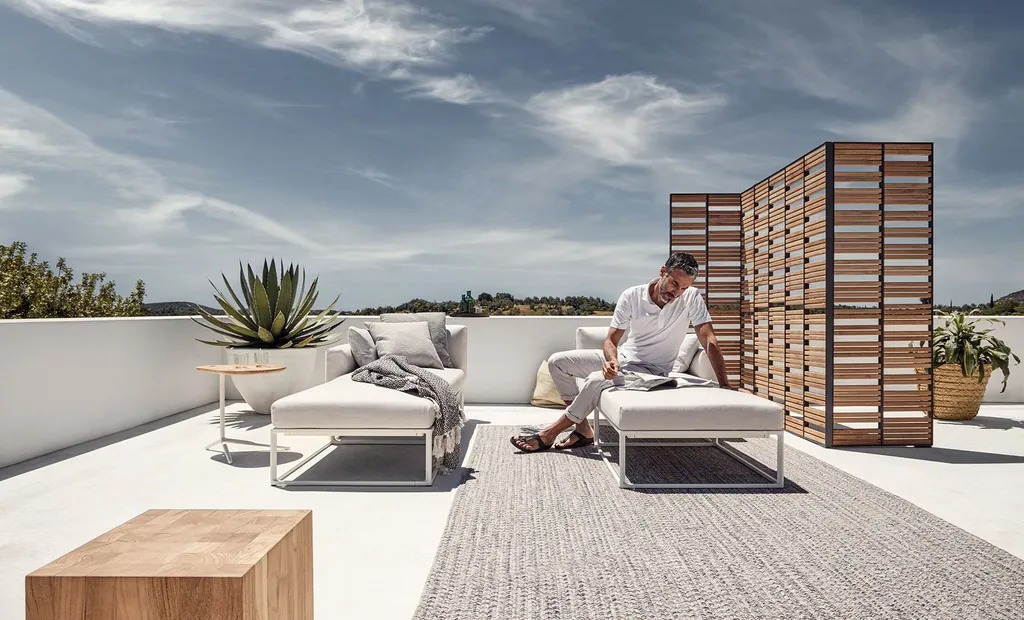 Lounge – aus dem Hause Gloster Die Gloster Outdoor Kollektion Maya besteht aus einer Reihe von Lounge-Elementen mit einladenden, bequemen Sitz- und Rückenkissen. Breite horizontale Linien und durchsetzungsstarke Winkel verbinden sich zum mutigen, nachsichtigem Profil. Maya wurde von dem Designer Mark Gabbertas entworfen. Die Gestaltung der Kollektion basiert auf dem Prinzip des klassischen Gloster Cloud-Rahmens, sie verkörpert die Raffinesse der neuen Designphilosophie mit einer besonderen Aufmerksamkeit auf die Materialien und Technologien, die an der kreativen Front des Gartenmöbeldesigns stehen. Es ist oft einfacher für einen Designer, von vorne zu beginnen, anstatt ein vorhandenes Design zu verbessern. Das war die Herausforderun: Die sanfte, aber sinnvolle Weiterentwicklung einer bestehenden Idee. Den Geist des Originals zu bewahren und gleichzeitig aufzufrischen. Das Maya-Gestell ist aus einem ultraschlanken, pulverbeschichteten Aluminiumprofil hergestellt, die Beine aus Aluminiumguss ausgearbeitet. Wetterfeste Polsterung in vier Stoffklassen bereichert die Kollektion und macht die Maya Loungegruppe zu einem echten Hingucker in Ihrem Garten oder auf der Terrasse.