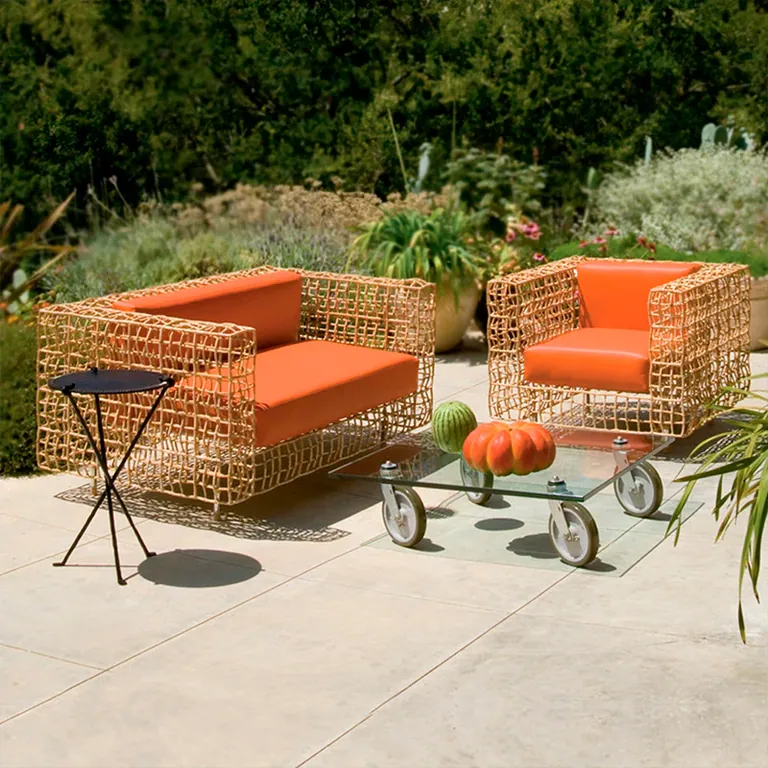 Yin & Yang verkörpert eine Verschmelzung von entgegengesetzten Elementen, geometrischen und organischen, biegsamem Rattan mit starrem Stahl und fester Form mit transparentem Volumen. Diese Outdoor Kollektion ist eine gelungene Integration von Material, Funktion und Form. Wetterfeste Kissen machen diese Kollektion besonders komfortabel. Jedes Stück von der Yin & Yang Kollektion von Kenneth Cobonpue wird sorgfältig mit der Verwendung von Fertigkeiten aus vielen Generationen der philippinischen Handwerker von Hand gemacht. Reiche Tradition des Handwerks wird von Kenneth Cobonpue mit Investitionen in die Forschung, Entwicklung und Bildung unterstützt.