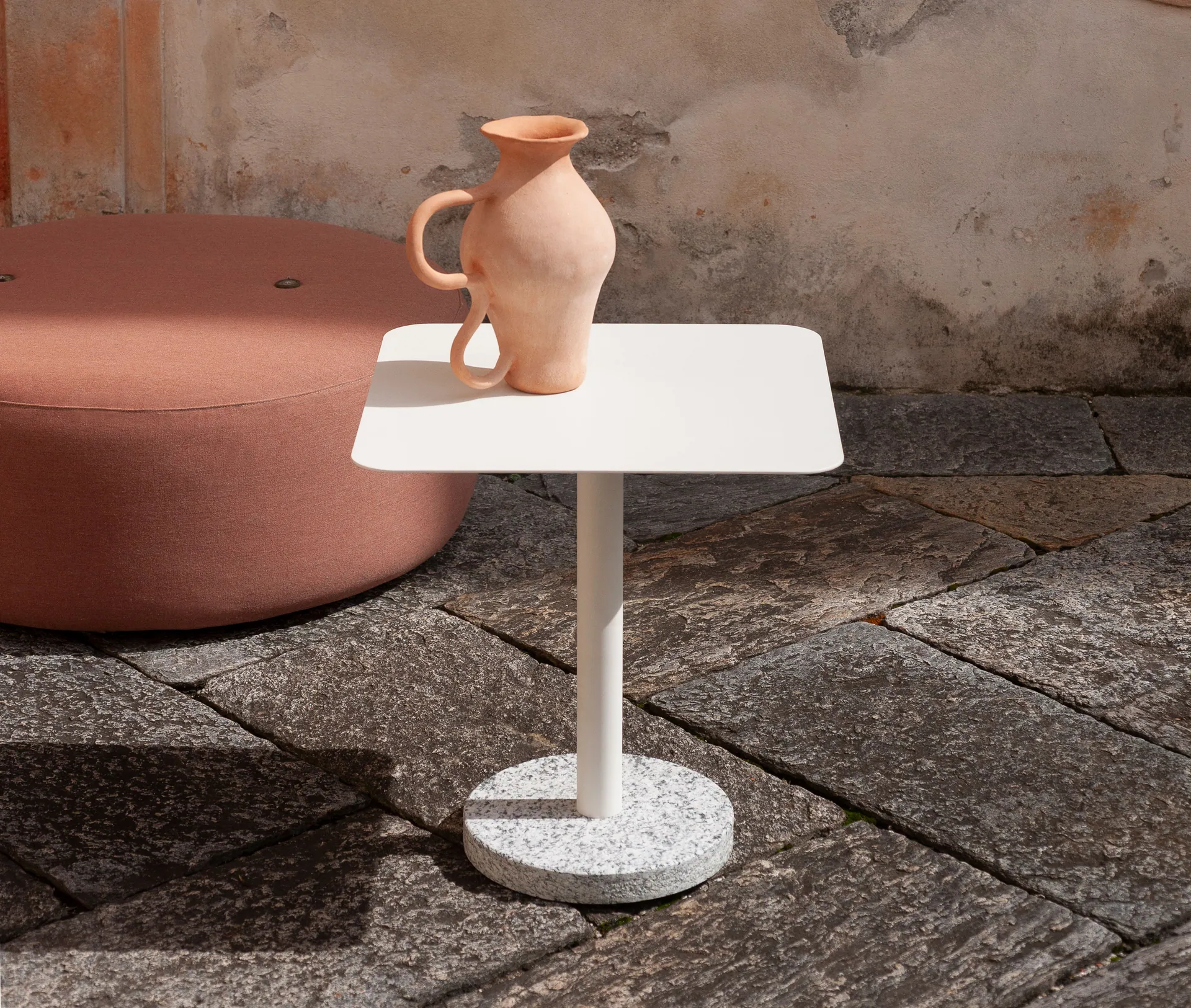 Beistelltische für den Outdoorbereich in einem linearen und unaufdringlichen Design. Die Sockel sind aus weißem Sempione Granit und einem lackierten Edelstahlgestell gefertigt. Sie eignen sich sehr gut für den Außenbereich, aber auch im Innenbereich machen sie eine gute Figur. Ideal um Ihre bestehende Einrichtung zu ergänzen.