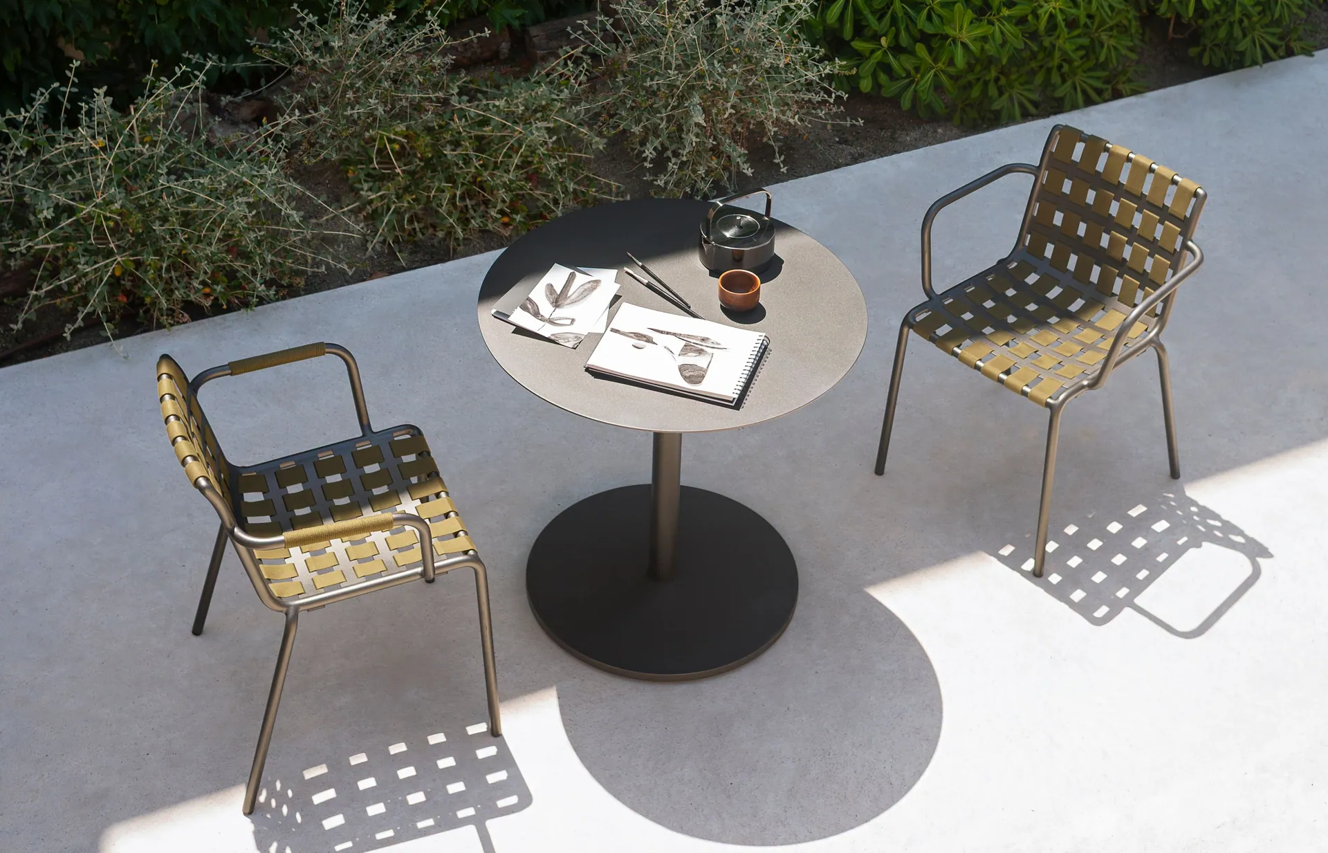 Ein Bistrotisch mit runder oder quadratischer Platte, in verschiedenen Größen verfügbar, leicht und klassisch: das ist BUTTON, der sowohl einen kleinen großstädtischen Balkon als auch eine große Terrasse eines Restaurants am Meer mit Geschmack und Diskretion ausstatten kann. Diese elegante Kollektion von Esstischen für den Außenbereich wird auch durch den vielseitigen Beistelltisch mit rundem Fuß und Platte vervollständigt. Der David Esstischstuhl ist aus gereiftem Teakholz und hat eine geflochtene Rückenlehne. Die raffinierte Silhouette passt perfekt zum David-Esstisch. Vincent Sheppard entwirft und fertigt seit 1992 Innen- und Außenmöbel mit außergewöhnlichem Sitzkomfort. Das Unternehmen ist weltweiter Marktführer bei Lloyd Loom-Möbeln, einer Technik, bei der Kraftpapier um einen Metalldraht gedreht und zu einzigartigen Möbelstücken verwoben wird. Heute werden Möbel von Vincent Sheppard in über 40 Länder exportiert.