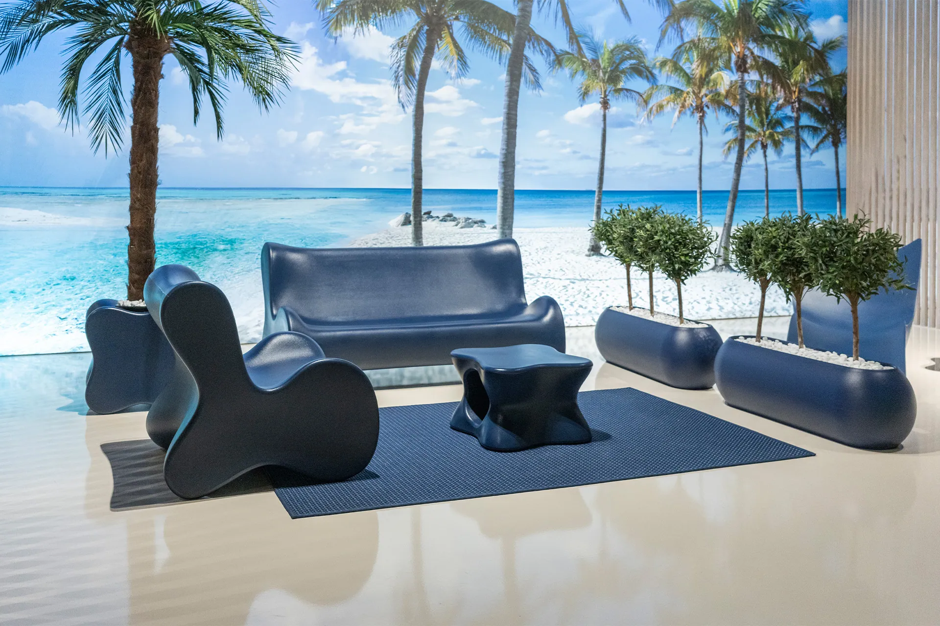 Bei der Doux-Kollektion von Vondom geht es so richtig rund, zumindest wenn man sich Sofa und Sessel anschaut. Diese Kollektion wurde von dem renommierten Designer Karim Rashid entworfen, der es hier wie immer liebt, mit unkonventionellen Formen zu experimentieren. Das gibt Ihnen die Chance auf außergewöhnlichen Möbeln mit einer ganz besonderen Note zu entspannen. Lassen Sie den Sommer zu einer runden Sache werden und setzten Sie hier bei der Villa Schmidt auf die Doux-Kollektion von Vondom. Das Wort doux stammt im Übrigen aus dem Französischem. Im Deutschen hat es viele Entsprechungen, wie etwa mollig, süß oder auch alternativ. Mollig, im Sinne von gemütlich können Sie es auf diesen herrlichen Stücken gewiss haben. Wenn Sie die nächste Kaffeerunde mit Freunden auf Doux-Sessel und -Sofa erleben, werden diese gewiss begeistert sein von deren Optik und Gemütlichkeit. Süß sind diese Stücke dagegen eher weniger, vielmehr sind sie aufgrund ihrer Formen ausdrucksstark und alternativ. Das Ausdrucksstarke und Alternative können Sie auch durch die Farben unterstreichen, die Sie hier bei der Villa Schmidt zur Auswahl haben und die ebenfalls Außergewöhnliches bieten. Ein ganz besonderes und stilvolles Ausrufezeichen können Sie natürlich mit einer der illuminierten Varianten setzen. Die Möbel der Doux-Kollektion bestehen aus thermoplastischem Kunstoff. Das hat den Vorteil, dass diese Stücke leicht zu reinigen sind. Darüber hinaus ist dieses Material aber auch sehr widerstandsfähig. Das macht die Doux-Möbel zu perfekten Begleitern für viele Sommer. Sie können sich also lange an den schönen Farben und Formen von Doux-Sofa, -Sessel -und -Tisch erfreuen. Ordern Sie hier bei der Villa Schmidt außergewöhnliche Möbel aus gutem Hause.