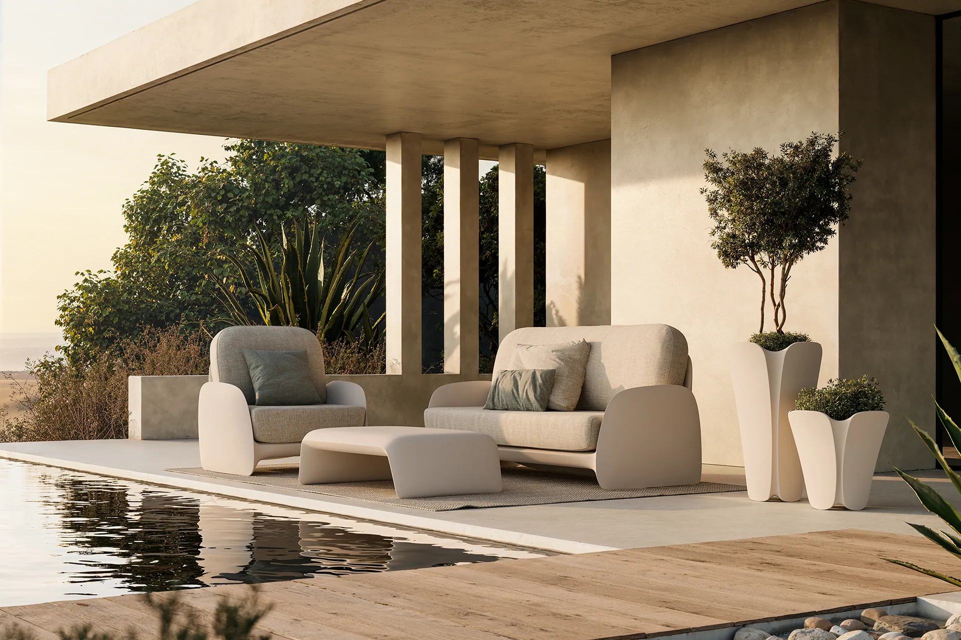 Die Vondom Pezzettina Loungekollektion ist von der Natur inspiriert. Diese originellen Gartenmöbel zeichnen abgerundete Elemente und flüssige, ausdrucksvolle Formen aus. Archirivolto Design hat für diese neue Kollektion ein kreatives Konzept entwickelt, weg von der üblichen Geometrie, um ein neues Gleichgewicht zwischen der Natur und Technik zu schaffen. Das kurvenreiche Design mit eleganten Formen, die aus Polyethylen, im Rotationsgussverfahren hergestellt und dabei noch 100% recycelbar sind macht Pezzettina besonders markant in jeder Umgebung.