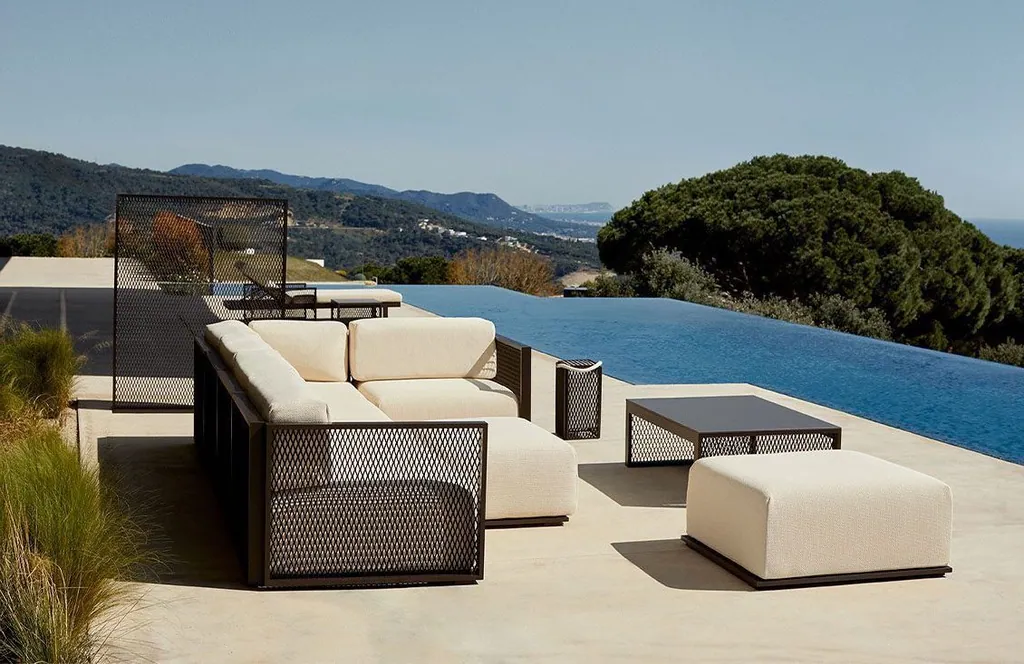 Die Factory-Kollektion, entworfen von Ramon Esteve für Vondom, zeichnet sich durch das Aluminiumprofil und das "deployé"-Gitter aus. Entdecken Sie diese Kollektion von Aluminiummöbeln, bestehend aus einem modularen Sofa, einem Armsessel, einer Sonnenliege, einem Beistelltisch, einer Lampe, einem Couchtisch, einem Stehtisch, Stühlen und einem Raumteiler.