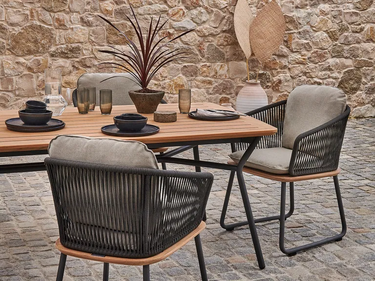 Tische und Stühle: Ihre Terrasse, unser Tisch – entdecken Sie eine vielfältige Auswahl an Weishäupl Tischen und passenden Stühlen, die sich durch klassische, elegante oder moderne Designs auszeichnen. Ob rund oder eckig, die Tische lassen sich mühelos in jede architektonische Stilrichtung integrieren. Passend dazu bietet Weishäupl für jede Anforderung die passende Sitzmöglichkeit.