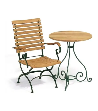 Es wird darüber hinaus das sehr robuste, wind- und wetterfeste Teakholz verwendet, das durch seine Maserung ein optisches Highlight bietet. Selbiges gilt für die Gestelle, die durch ihre Geschwungenheit elegant verspielt daherkommen. Bei den Gestellen können Sie zwischen drei Farben wählen und so Bank, Tisch, Stuhl, Sessel oder auch Sonnenliege noch besser an ihre Umgebung anpassen: Dunkelgrün, Mattsilber und Weiß stehen zur Auswahl.